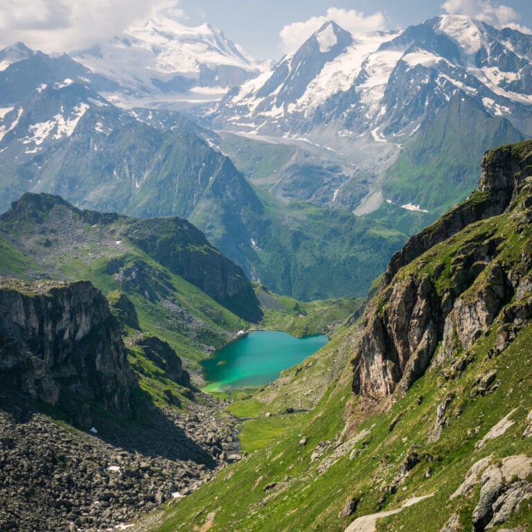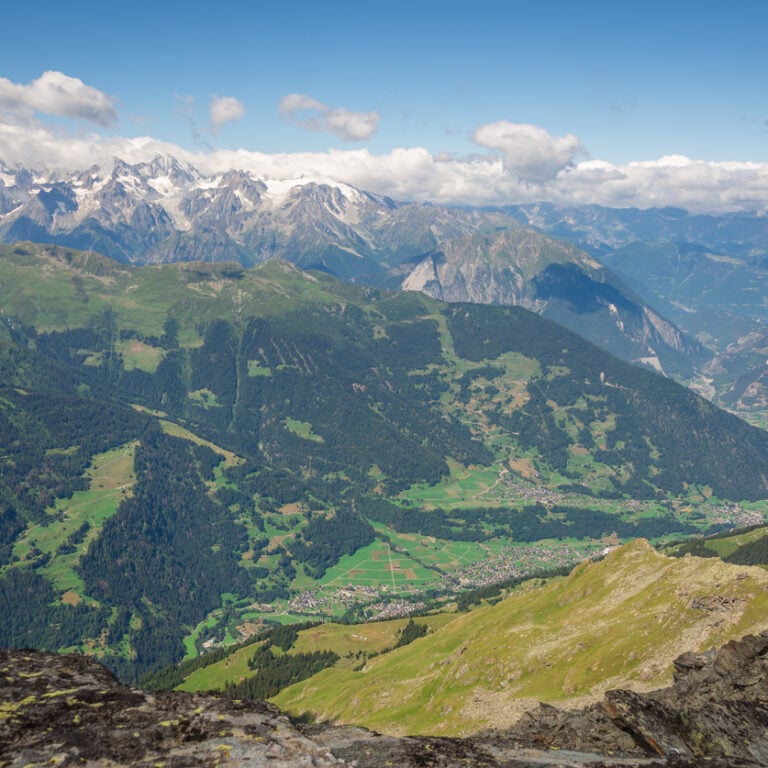 We meet in Verbier and hike through high meadows and alpine hamlets, reaching the Mont Fort huts for our first night in the mountains—complete with sweeping panoramic views, at 2,457 m (8,060 ft).