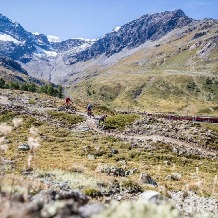 At around 9:00 a.m., the group meets in Scuol to pick up the rental bikes and check the equipment for the coming days. We then start our first ride, divided into two groups. The moderate group explores the beautiful surroundings of Scuol—passing centuries-old Engadine villages and riding on some singletrails.