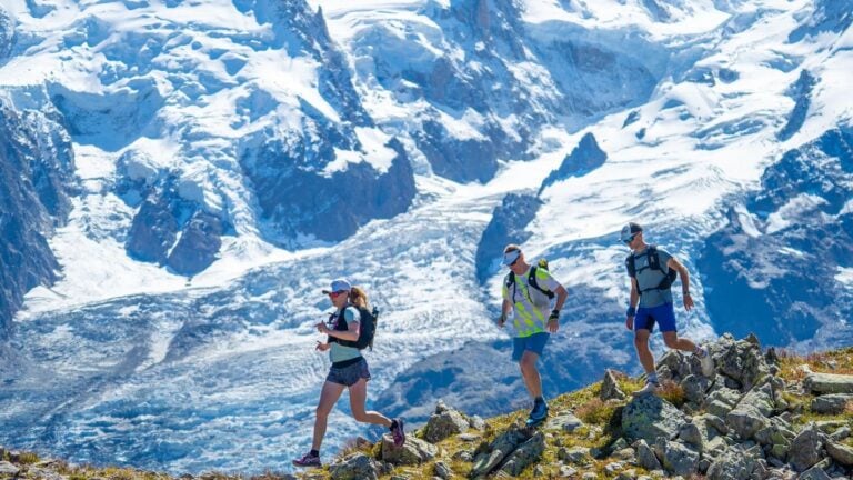 Our run begins with a scenic train ride towards the Swiss-French border on the Mont Blanc Express. We start at Montroc and follow the Chemin des Diligences. We’ll see cows producing milk for local cheese on alpine pastures. We gain elevation using lightweight running poles to reach Col des Possettes (1,997 m / 6,551 ft). After a coffee stop, we continue to Aiguillette des Possettes (2,201 m / 7,221 ft), where we enjoy panoramic views and a high-altitude picnic. From here, we have a fun descent down to the valley floor and the village of Le Tour. There is an optional cable car descent for those who want to shorten the run.