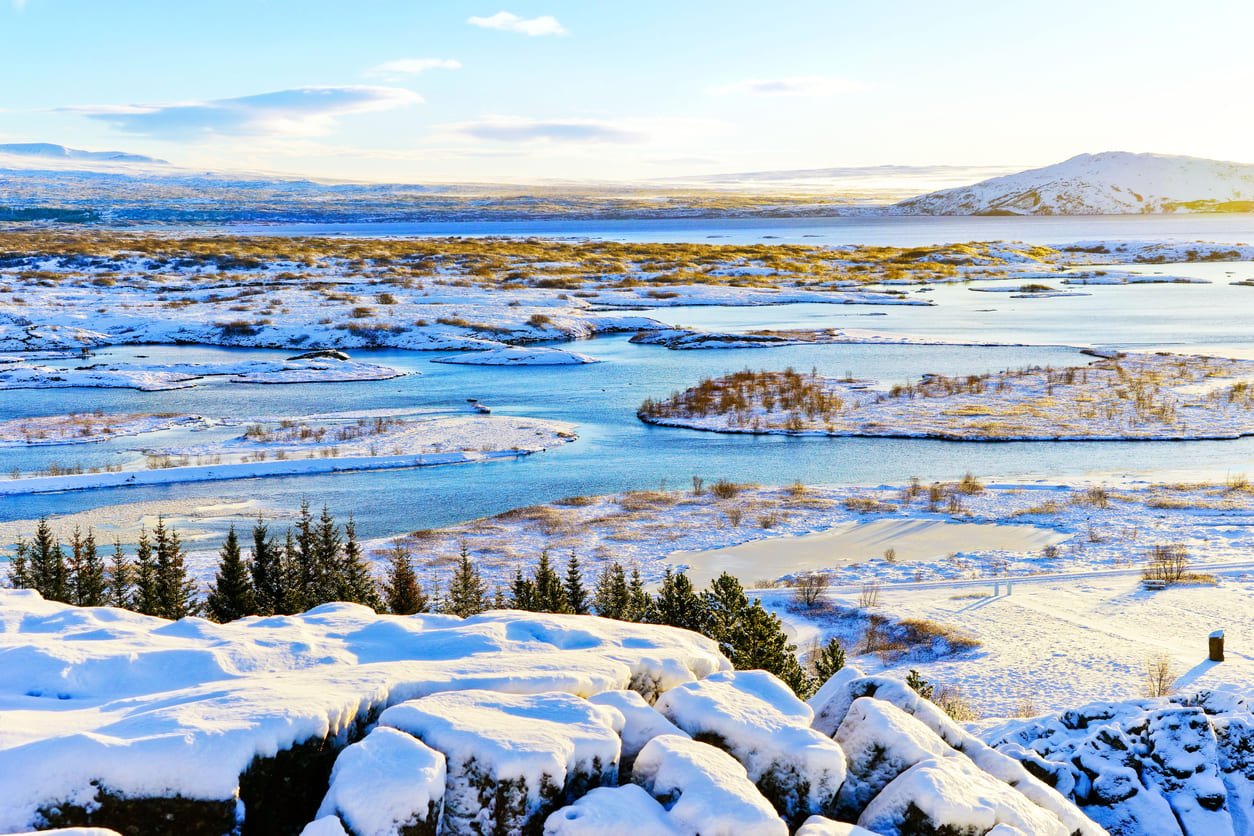 • Our driver-guide will pick us up at our accommodation at 8:30am. A short drive in a 4×4 minibus takes us to Thingvellir National Park, where we will hike along the fault lines that reveal the rifting of the Earth’s crust. We’ll learn about the major historical events that have taken place here and gain an understanding of why this is a UNESCO World Heritage Site. After this fascinating hike, we’ll continue to explore the rest of the Golden Circle, including the spouting springs of Geysir and the majestic Gullfoss waterfall. Dinner and accommodation will be at the cozy Efstidalur country hotel, where we will stay for three nights. In the evening, we’ll keep an eye out for the Northern Lights.