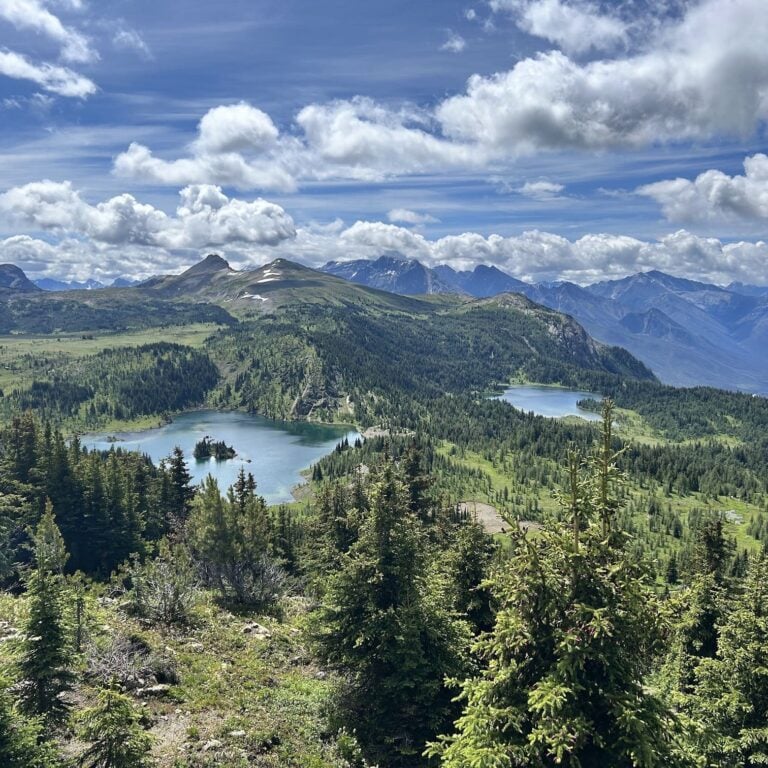 • Accessible by gondola, this hike begins high in the alpine with minimal climbing required. Rolling trails pass through wildflower meadows, reflective lakes, and sweeping mountain backdrops. A gentler day that invites everyone to slow down, breathe deeply, and take in the Rockies’ high-alpine beauty.
