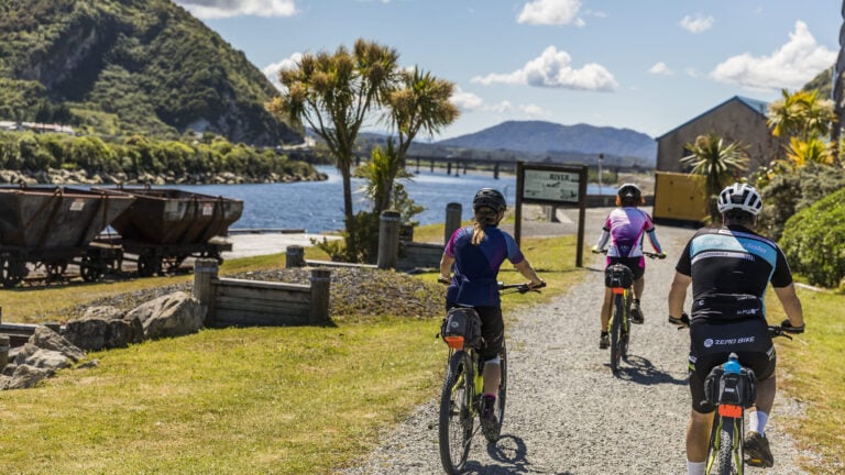 Meet your New Zealand West Coast cycling guide and fellow riders in downtown Christchurch at 6am. After a quick gear check, get a drive across the picturesque Canterbury Plains and cross Arthur’s Pass, famous for its majestic snow-capped peaks. Reach the old gold rush town of Ross, backed by landscapes cloaked in native bush. After a late lunch, saddle up for your first ride on the West Coast Wilderness Trail. Pedal along a rail trail that leads to the Treetop Walkway (optional), offering a bird’s-eye view of Lake Mahinapua’s rainforest. Cruise to Hokitika, a charming town known for pounamu (greenstone) and arts & crafts. Immerse yourself in its dramatic beach and famous sunsets.