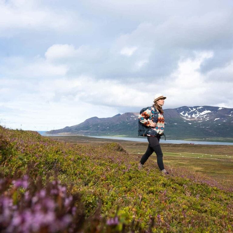 At the lodge, we can enjoy evening stretching sessions and floating therapy in the pool—perfect for soothing tired muscles after a day of adventure. Located next to the lodge is Barðslaug swimming pool, a local gathering place since 1895 originally built over a natural geothermal spring to provide swimming lessons and warmth during the cold winters. Apart from a geothermal pool, we’ll also have access to a hot tub and a sauna.