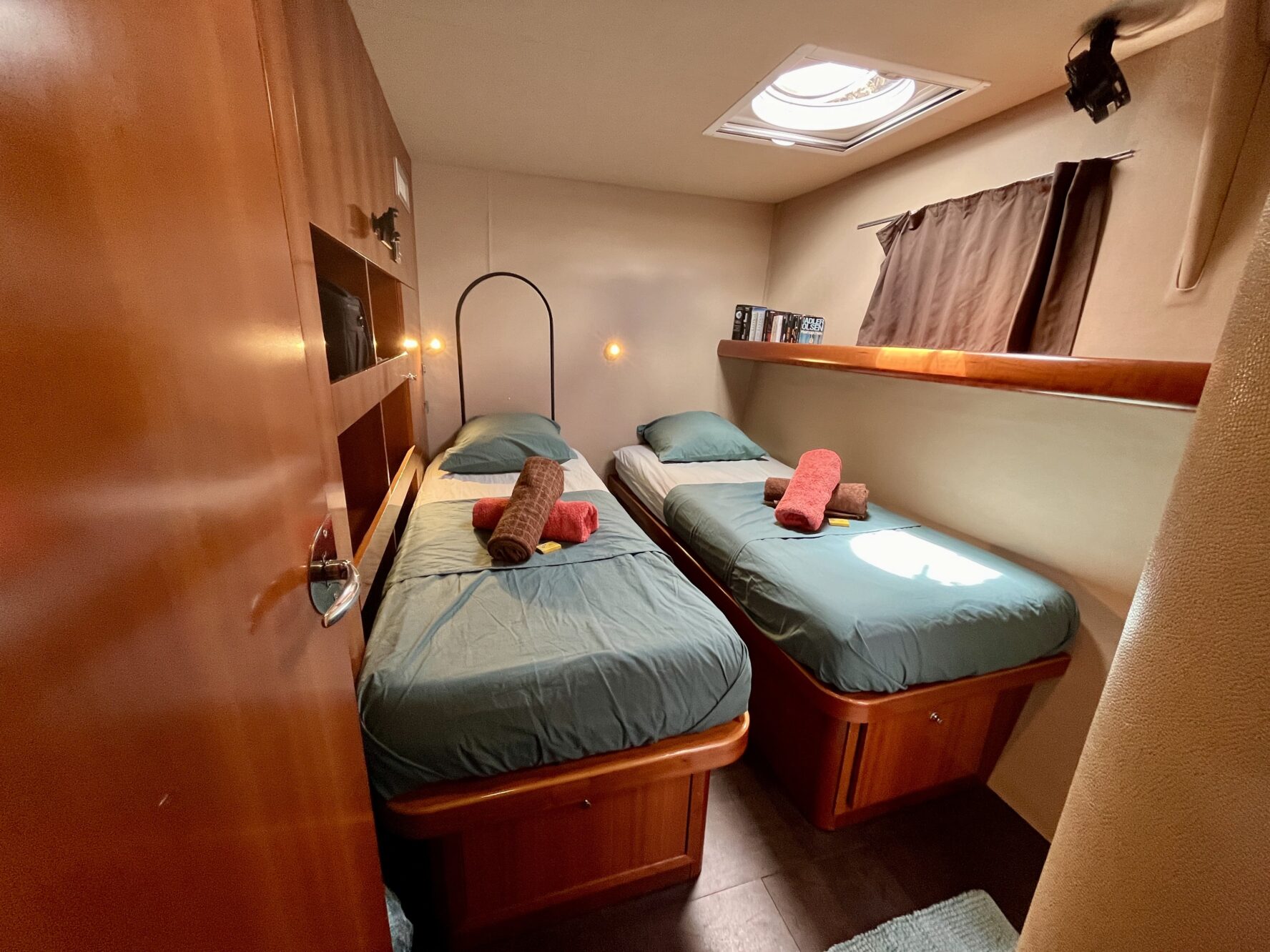 cabins which are perfect for couples, 1 deluxe twin with 2 single beds which works well for solo travelers or friends traveling together, and 1 superior cabin which is larger than the deluxe cabins.