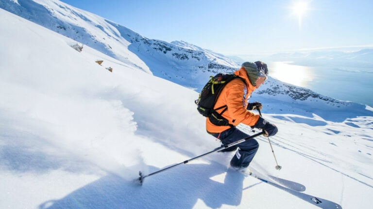 Skiing these remote, untouched slopes by the ocean under the midnight sun will redefine your sense of vastness