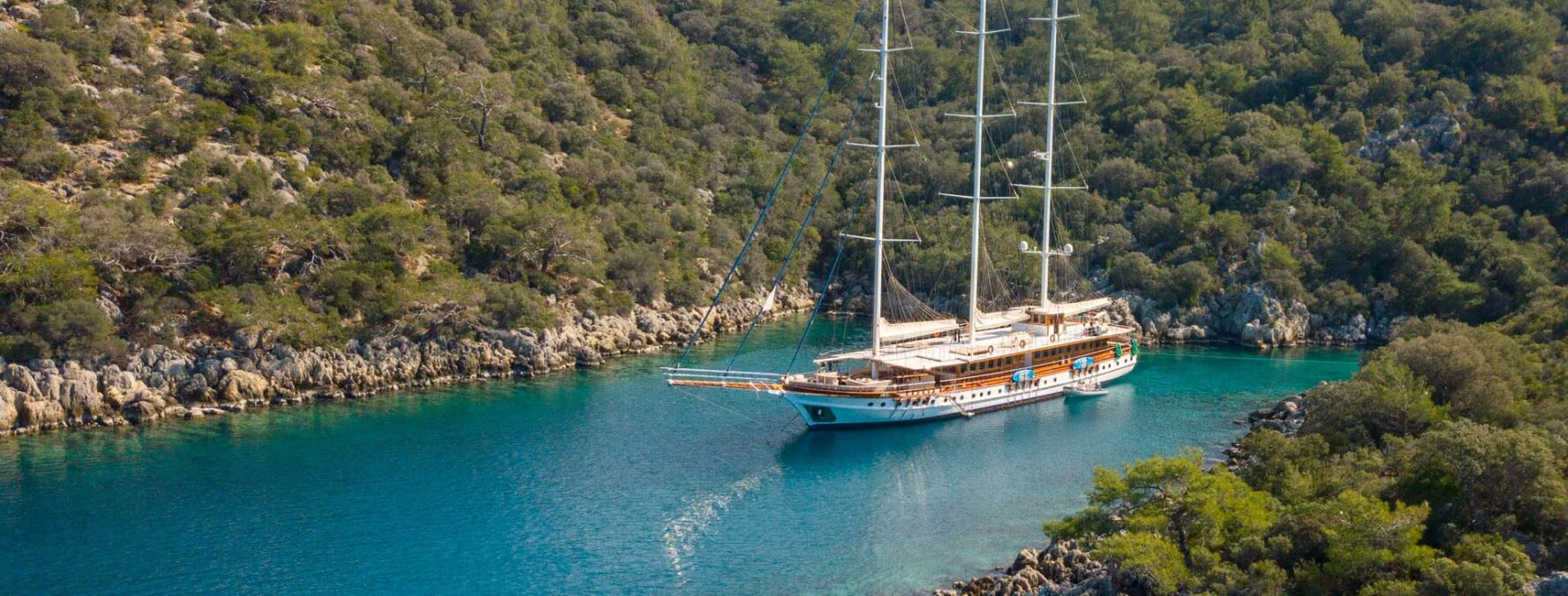 Across its two-tiered deck, Boreas provides ample space to unwind and relax, featuring a spacious outdoor deck with upholstered seating and lounge chairs, as well as big tables and chairs on the upper deck. A variety of water sports equipment is also available on board. The professional 7-member crew is known for their warm hospitality and strong commitment to guest safety and comfort.
