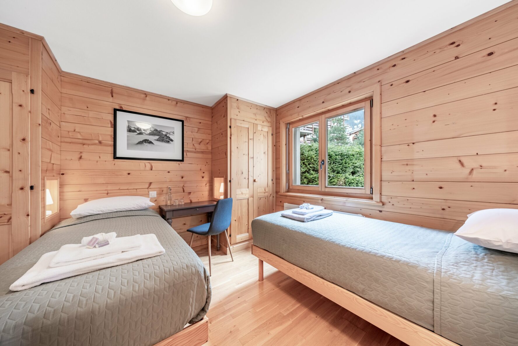 The lodge features 7 bedrooms, accommodating up to 13 people. There is one bunkbed room, 4 twin rooms (beds can be pushed together), one single room (all of these have shared bathrooms), and a large master bedroom with its own bathroom. Let us know prior to booking if you need more information on additional costs regarding your choice of a room.