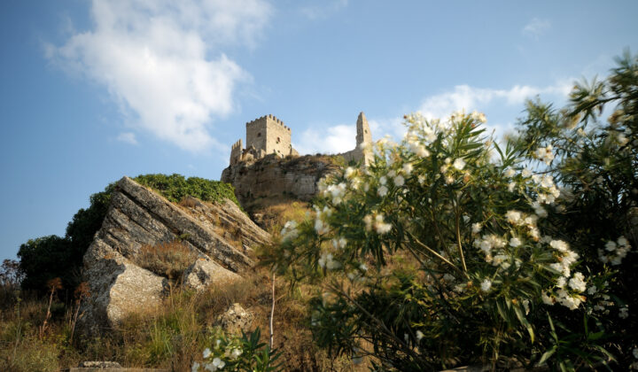 Most of the day, we are going to be walking on shepherd tracks that follow Medieval royal roads. We will walk across extensive pastures and climb up to the amazing fortress of Vicari.