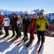 The pace is flexible and adjusted to the group, with plenty of breaks built in throughout the day. If you’re confident on intermediate terrain and enjoy spending long days skiing, you’ll be right at home.