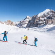 • Head straight to the Dolomites’ backcountry and discover the world of backcountry skiing! Learn useful skills on the diverse off-piste terrain and get your first taste of the backcountry. Master the fundamental ski touring techniques and skills by starting off slowly on easy descents and slowly progress towards more challenging terrain. Learn how to stay safe with an avalanche education course and enjoy the gorgeous vistas in the process. Join your private expert guide who’ll navigate you throughout the way.
