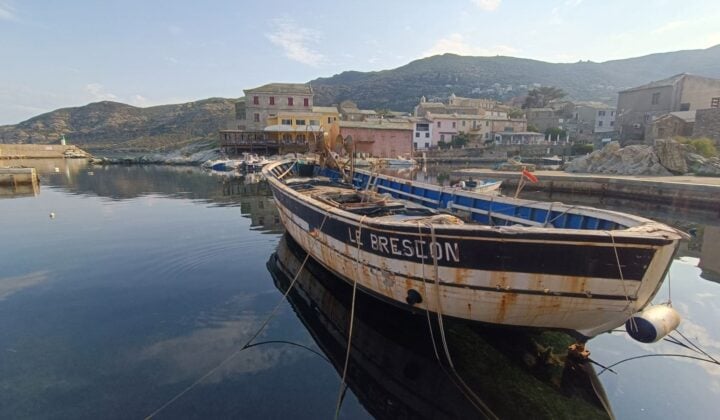 A boat in Centuri harbor, the second stop of the North Corsica bike holidays