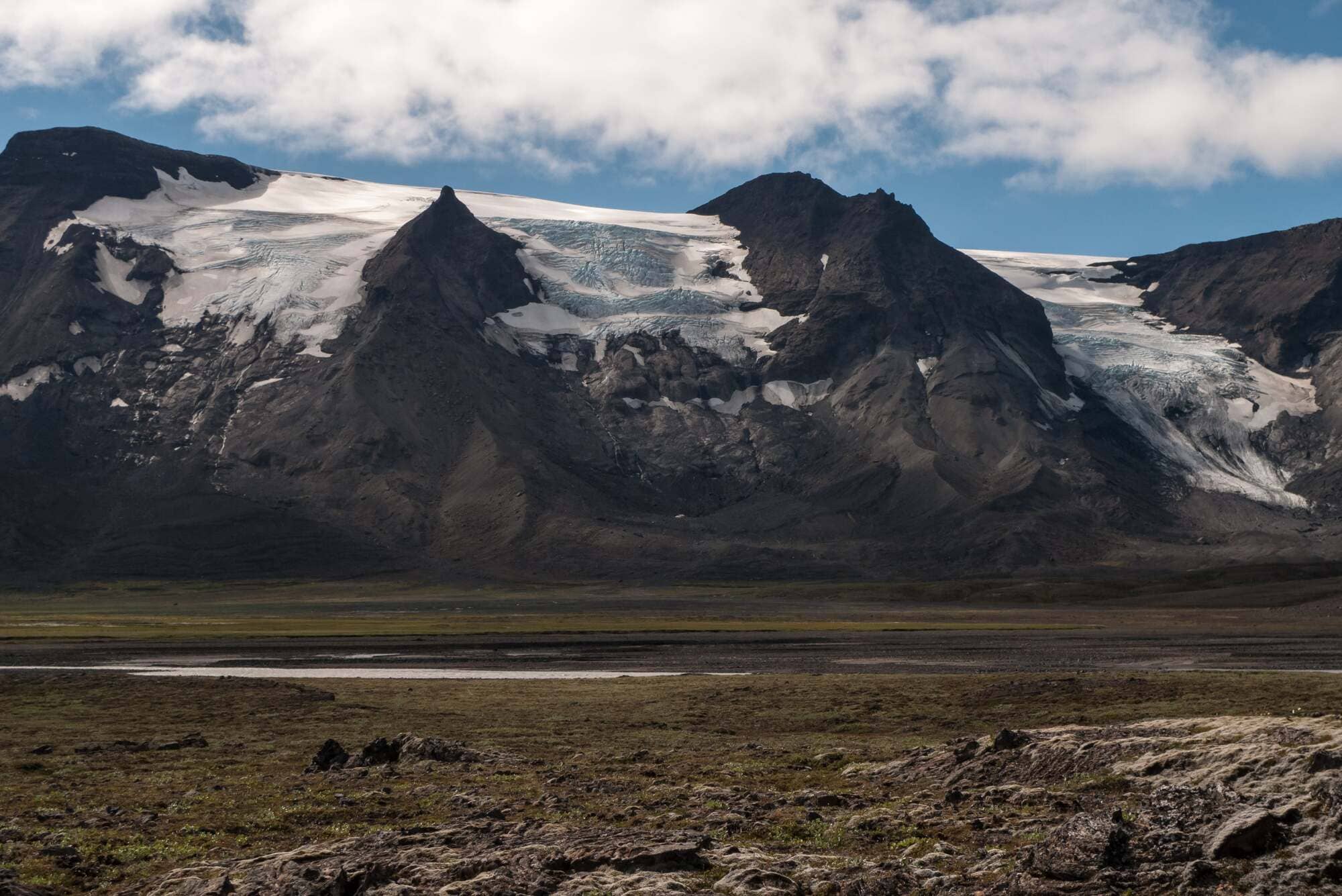 The mountain behind us was shaped by both lava flows and glaciers. Iceland never picks just one extreme.